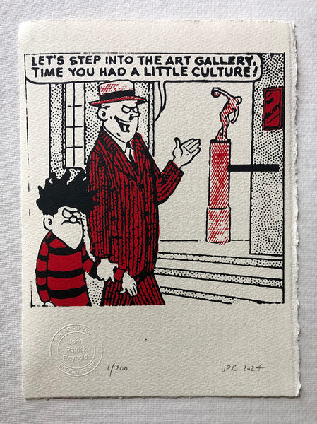 This screenprint has been officially approved by DC Thomson. I am the first and only screenprinter with permission to use the images of Dennis Menace and Gnasher in my work.
